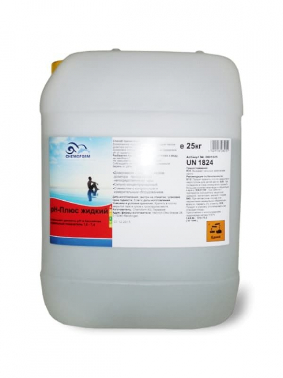 Препаратом pH-Плюс просто и удобно повысить уровень рН воды в бассейне. Средство изготовлено на основе гидрооксида натрия. Перед процедурой, следует измерить уровень рН на текущий момент, чтобы правильно рассчитать дозировку.